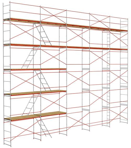 Модульность и универсальность: Леса легко наращиваются в высоту и длину, что позволяет адаптировать их под фасад любой конфигурации.